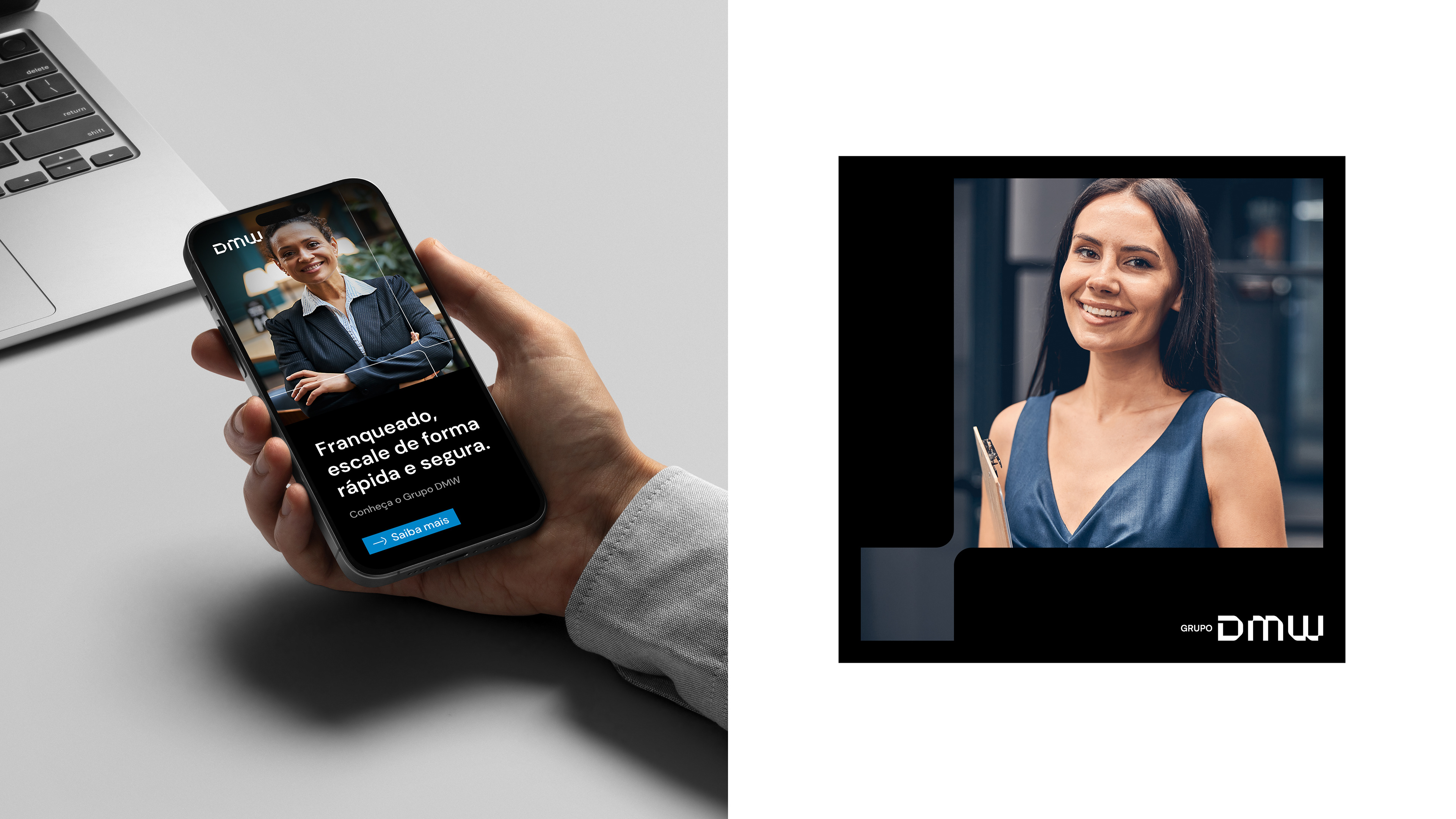 A identidade visual criada tem por objetivo apresentar a DMW de maneira formal, executiva, objetiva e moderna para o seu público de interesse.